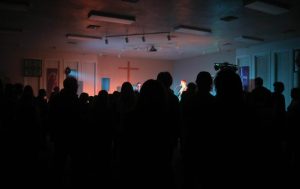 Traveller, joined by bands Youch!, Mr. Madame and World Record, performed at the Prince of Peace Lutheran Church on Feb. 21. The church was transformed into a live music venue by adding lights and a smoke machine to the stage. The crowd sang and danced along, even forming a mosh pit multiple times throughout the night.